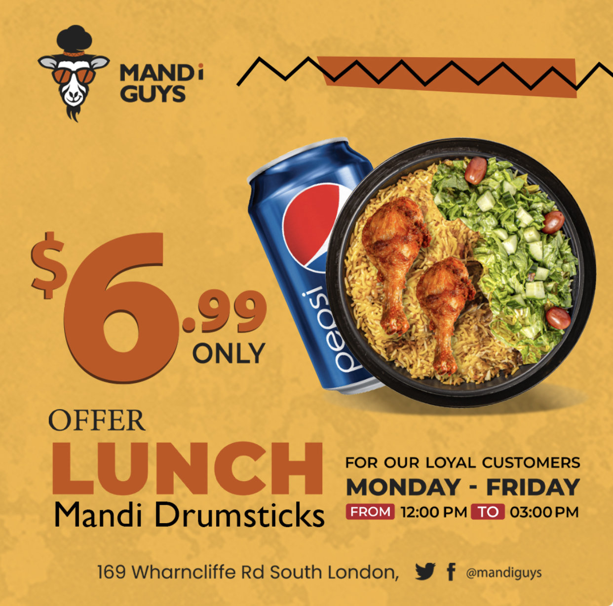 Enjoy 2 chicken drumsticks with rice and salad + a soft drink for ONLY $6.99.